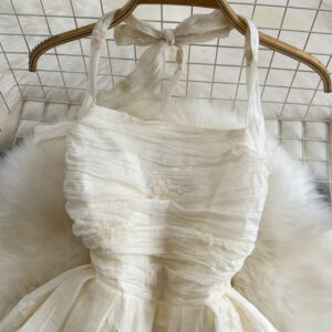 Fashoin Hanging Neck Backless Slim A-line Embroidered
